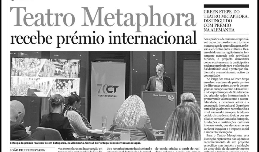 O projeto Green Steps, desenvolvido pelo Teatro Metaphora – Associação de Amigos das Artes, foi distinguido com o prémio internacional Connecting Cultures, atribuído pelo Corps Touristique e.V. no âmbito do CT Award, que reconhece iniciativas inovadoras na ligação entre turismo, sustentabilidade e diálogo intercultural.
